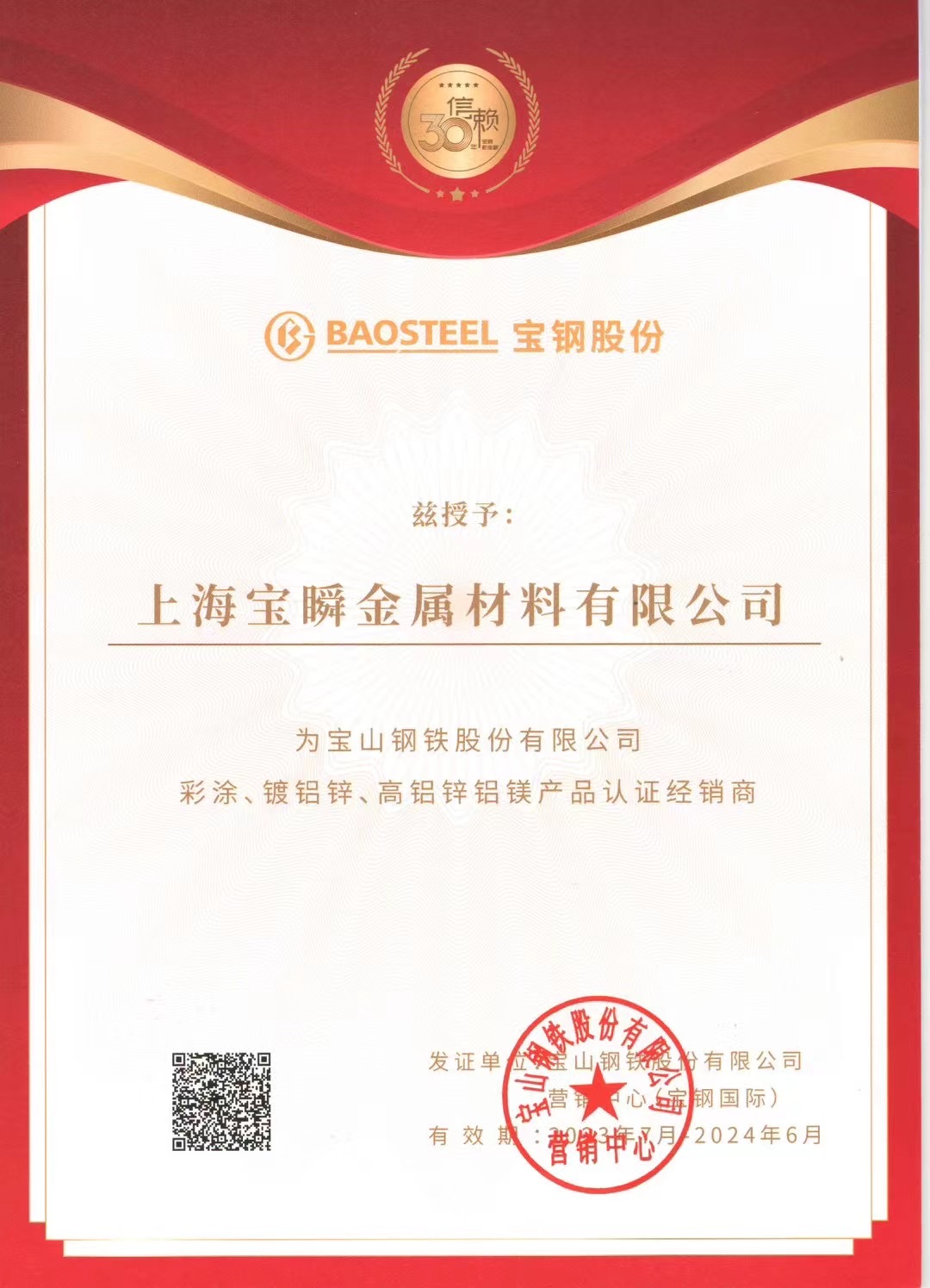 2023年上海寶鋼代理證書(shū)